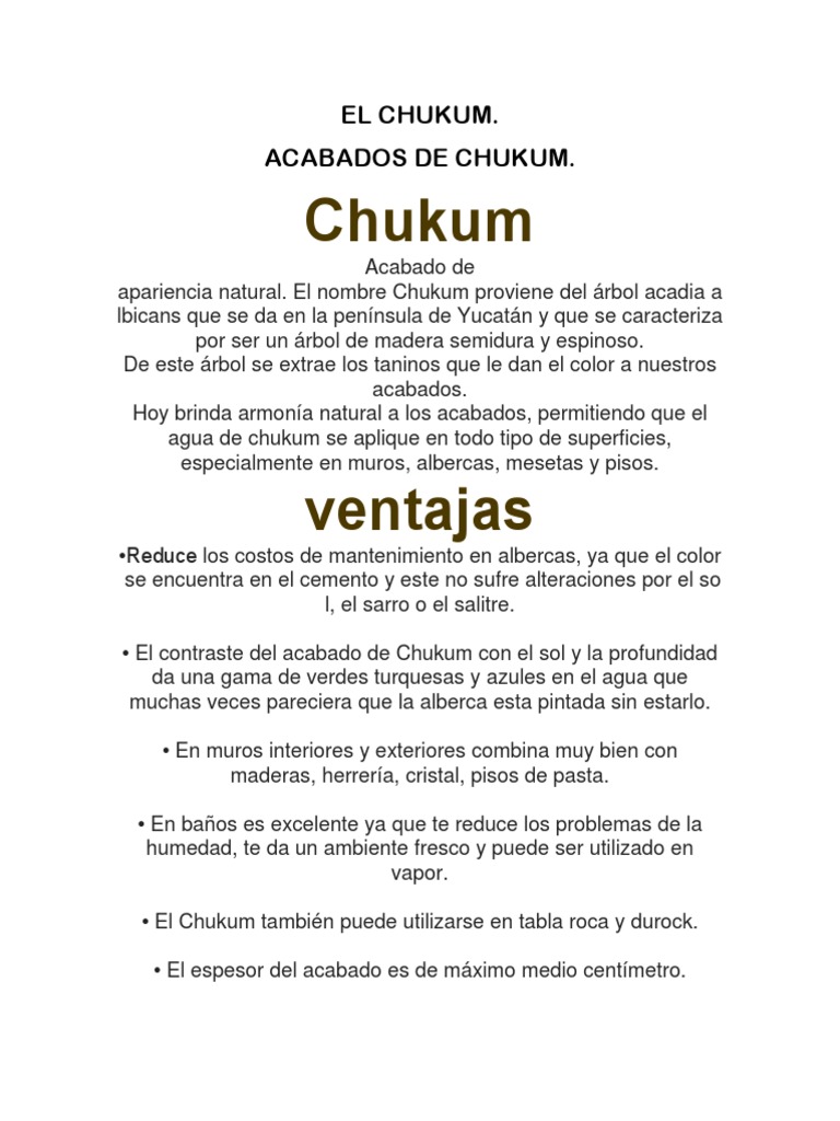 interiores. El producto Base de Chukum se utiliza sobre una superficie, siendo el soporte