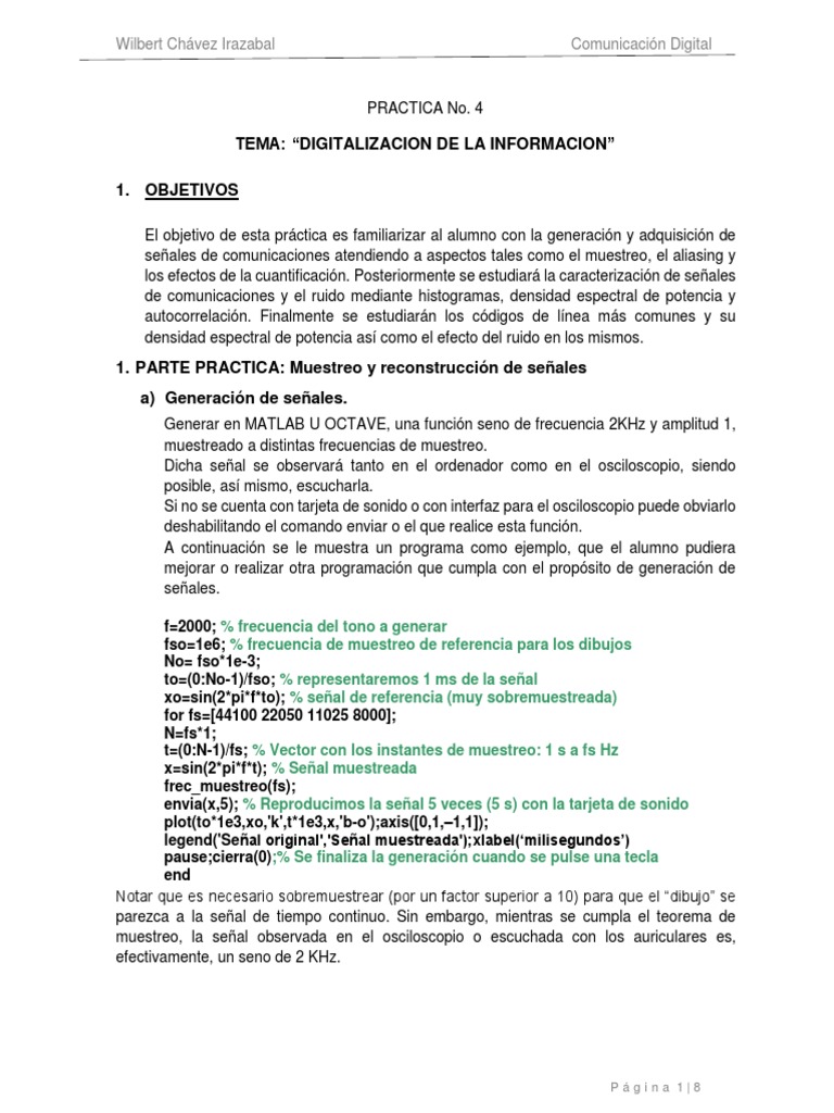 señales de comunicaciones atendiendo a aspectos tales como el muestreo, el aliasing y