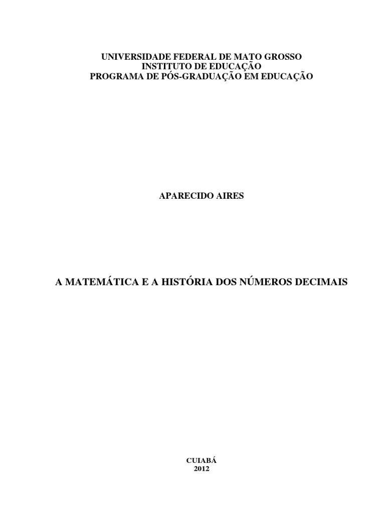 TÍTULO: "A matemática e a história dos números decimais"