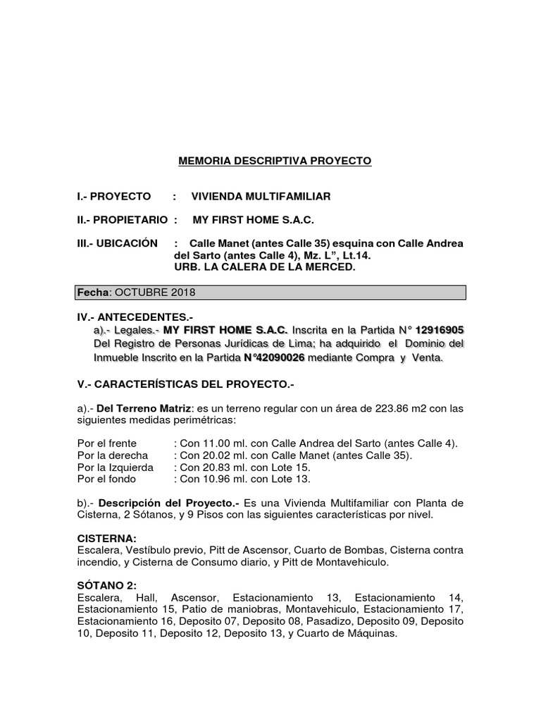 a).- Legales.- MY FIRST HOME S.A.C. Inscrita en la Partida N° 12916905