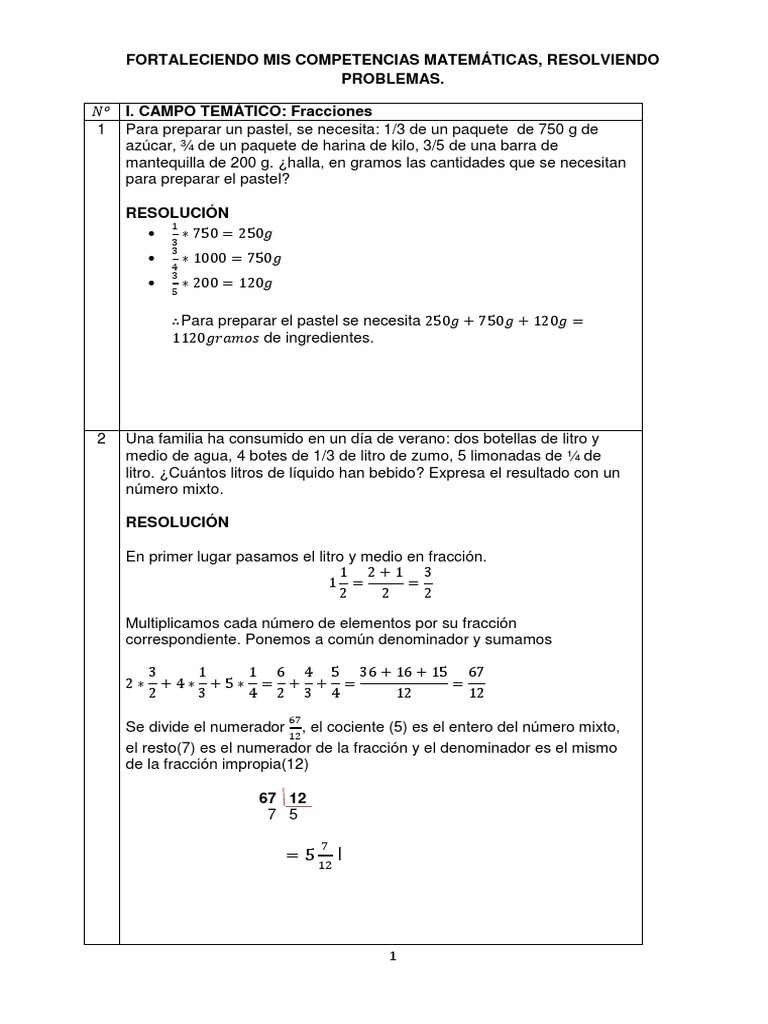 𝑁 𝑜 I. CAMPO TEMÁTICO: Fracciones