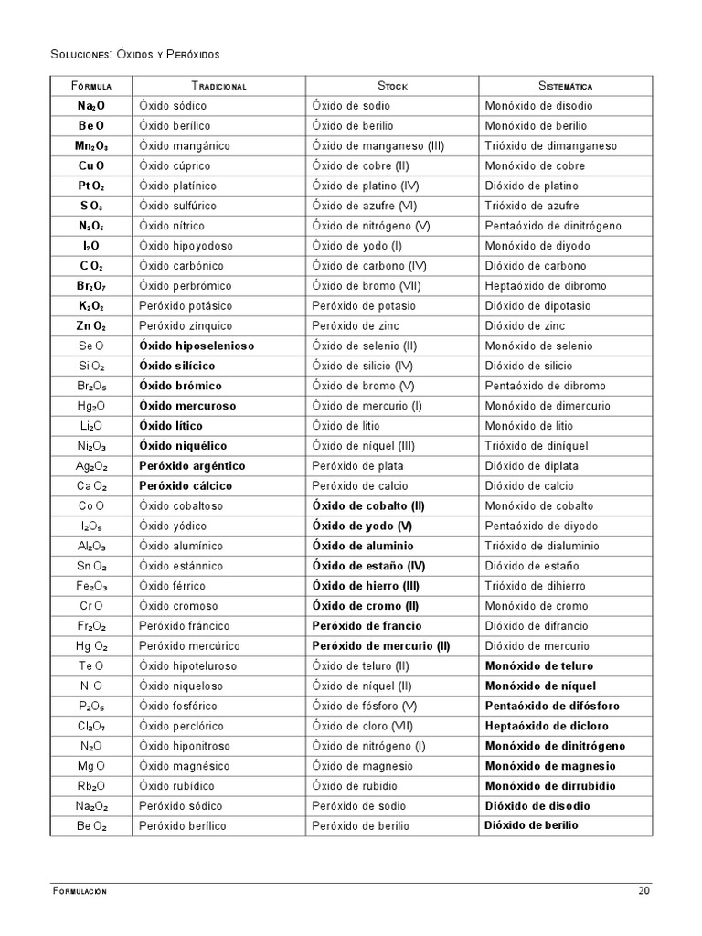 SOLUCIONES: ÓXIDOS Y PERÓXIDOS
