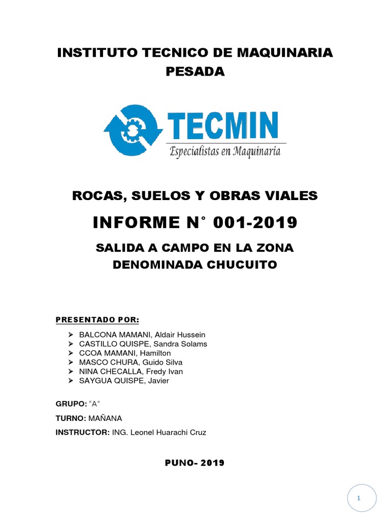El presente informe se realizó en diferentes etapas: Salida de campo