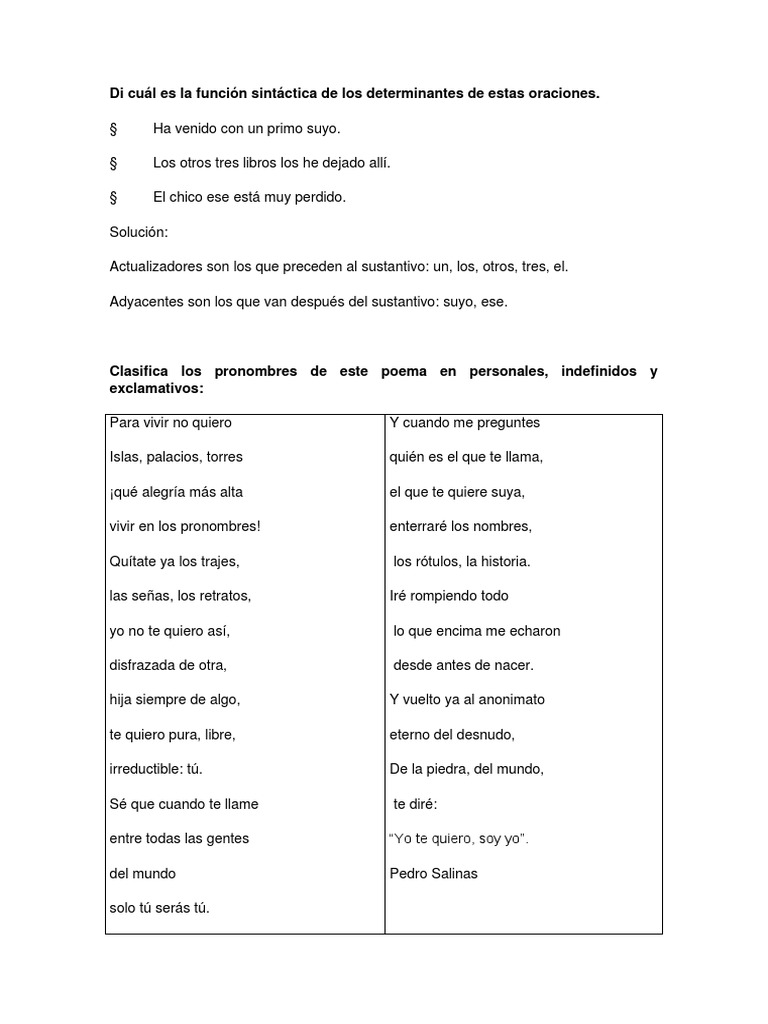 Clasifica los pronombres de este poema en personales, indefinidos y
