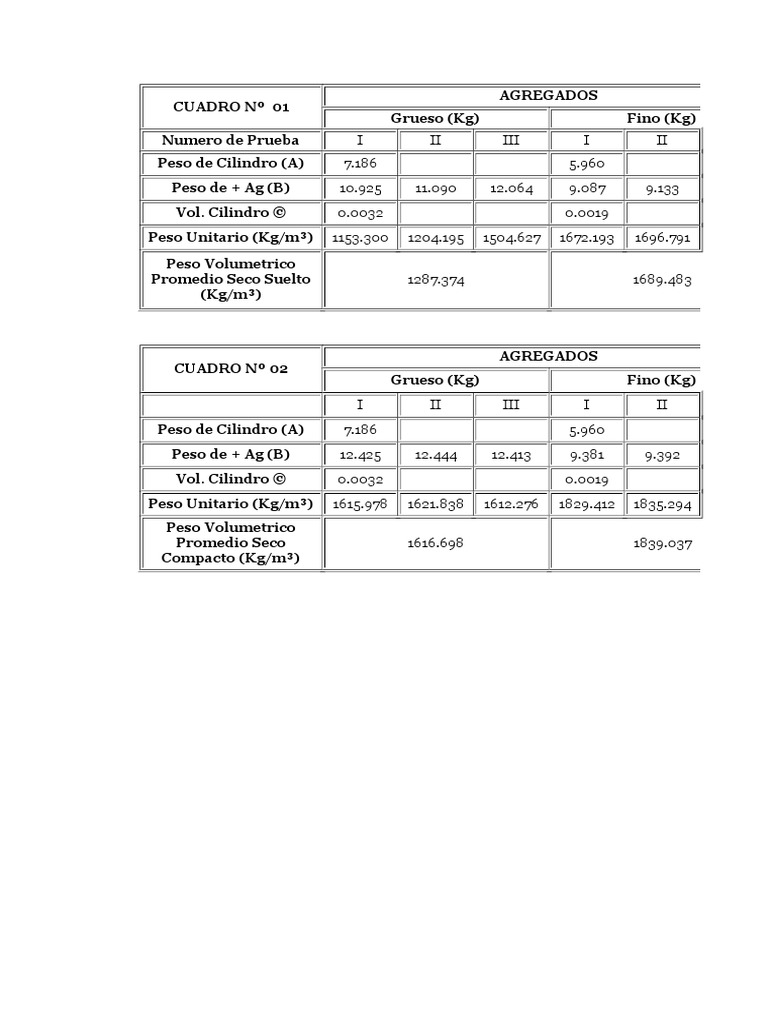 Peso Unitario (Kg/m³) 1615.978 1621.838 1612.276 1829.412 1835.294
