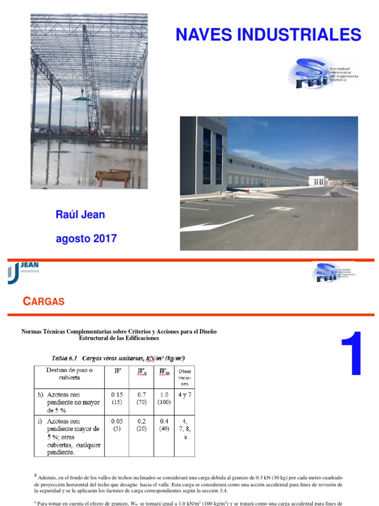 9 Para tomar en cuenta el efecto de granizo, Wm se tomará igual a 1.0 kN/m2 (100 kg/m2) y se tratará como una carga accidental para fines de