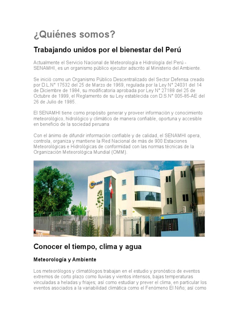 EL SENAMHI, como organismo adscrito al Ministerio del Ambiente encargado de la