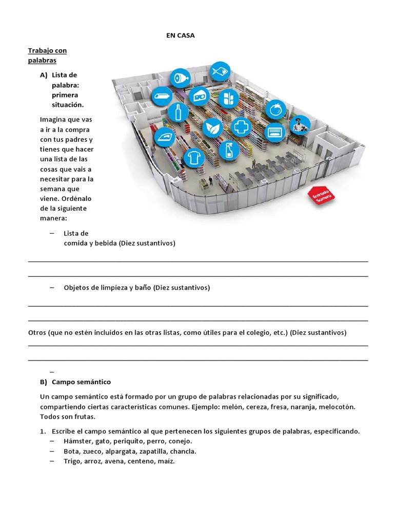 1. Escribe tres palabras que pertenezcan a las siguientes familias léxicas: