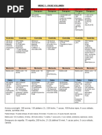 Espinacas (100g) + Zanahoria (30g) + Aceite de oliva (10g)). Fruta (150g).