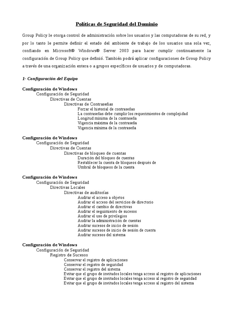 Políticas de Seguridad del Dominio