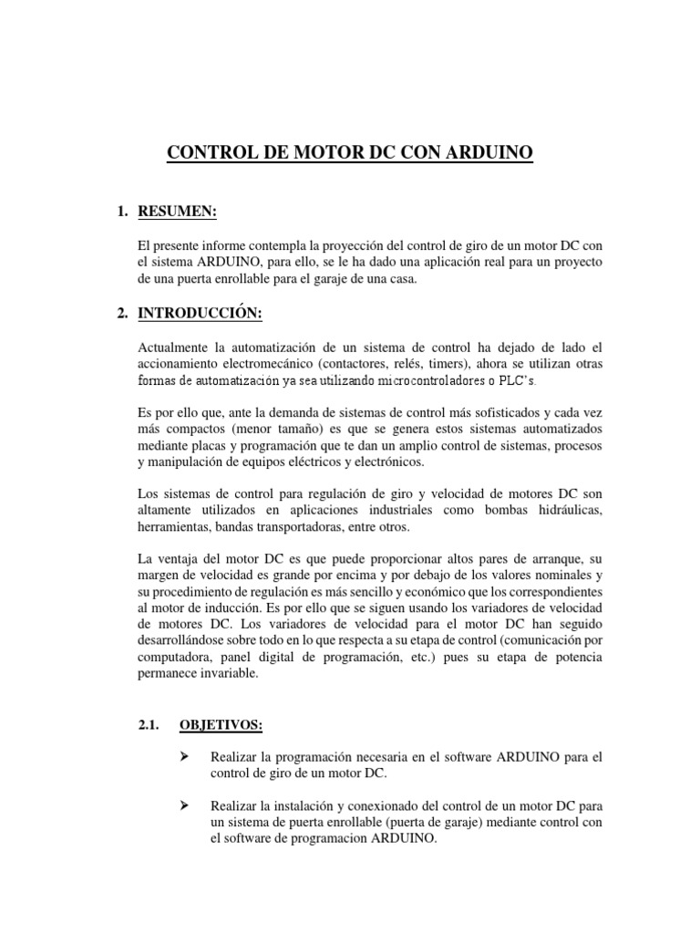 El presente informe contempla la proyección del control de giro de un motor DC con