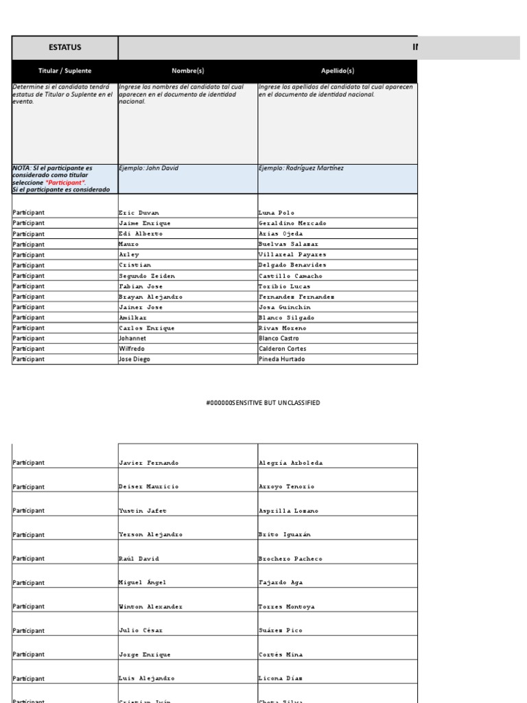 NOTA: SI el participante es Ejemplo: John David Ejemplo: Rodríguez Martínez