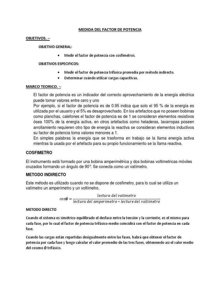 cada fase, por lo cual el factor de potencia trifásico medio coincidirá con el factor de potencia en cada