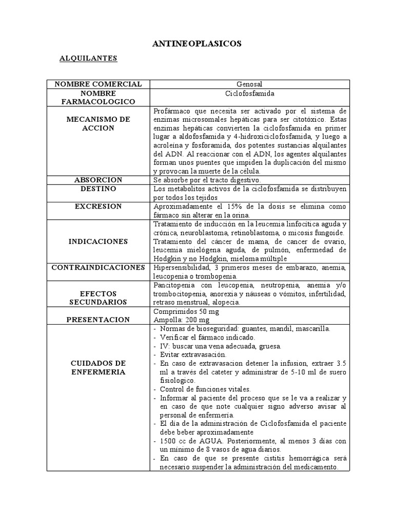 acroleína y fosforamida, dos potentes sustancias alquilantes