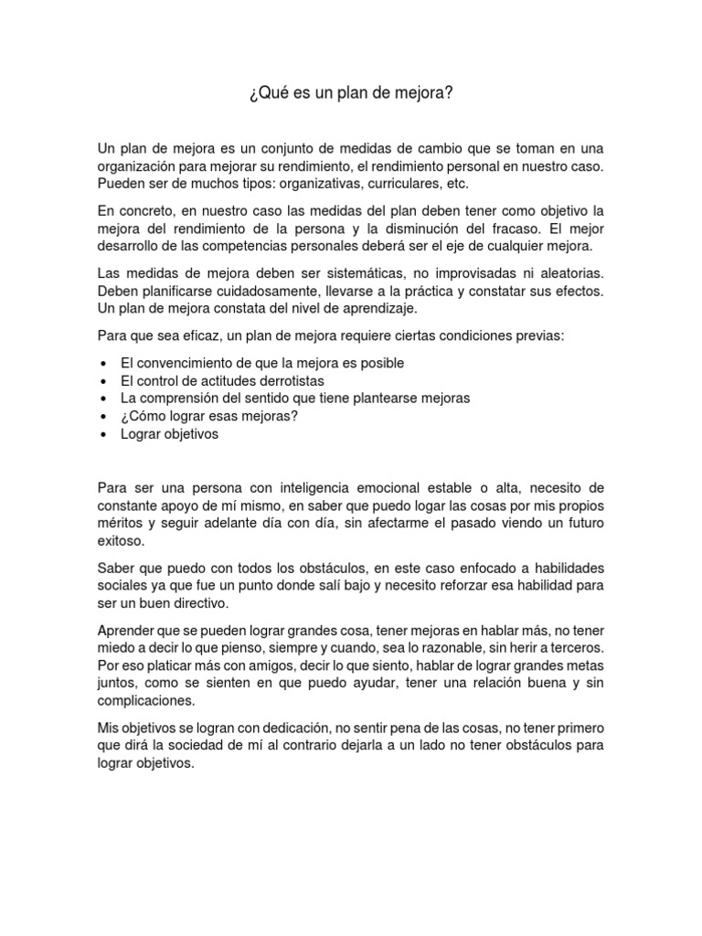 Un plan de mejora es un conjunto de medidas de cambio que se toman en una