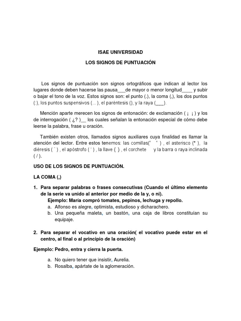 o bajar el tono de la voz. Estos signos son: el punto (.), la coma (,), los dos puntos
