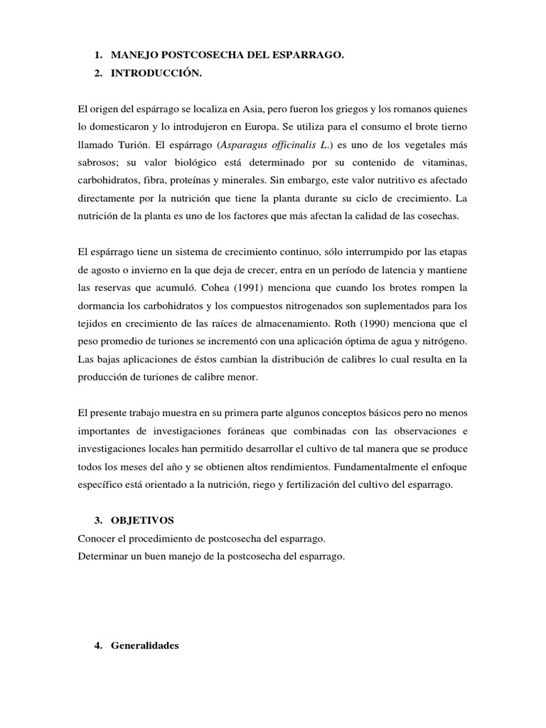 1. MANEJO POSTCOSECHA DEL ESPARRAGO.