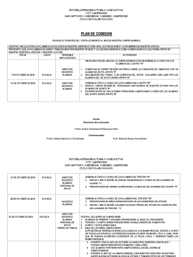 PLAN DE ACTIVIDADES DEL FORTALECIMIENTO AL MES DE NUESTRA CAMPECHANIDAD.
