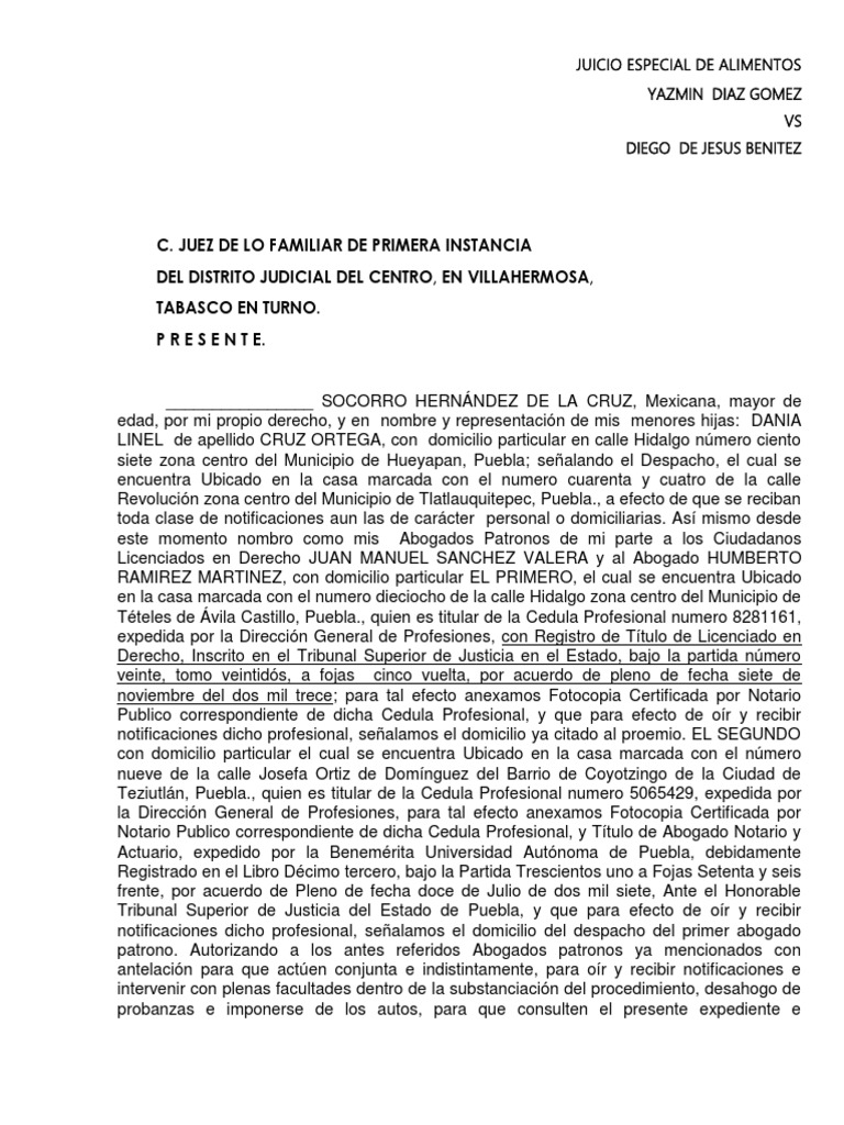 Licenciados en Derecho JUAN MANUEL SANCHEZ VALERA y al Abogado HUMBERTO