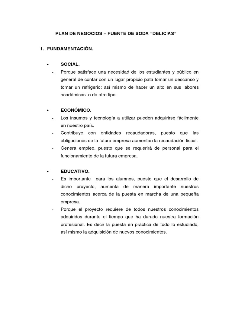 PLAN DE NEGOCIOS – FUENTE DE SODA “DELICIAS”