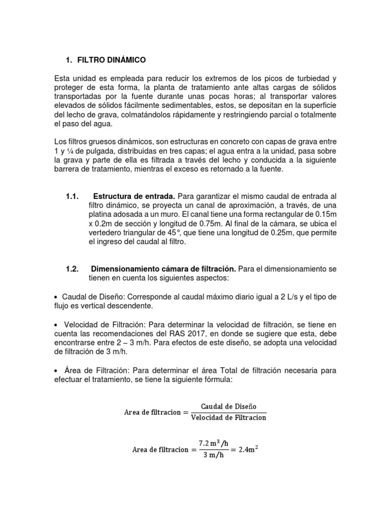1.2. Dimensionamiento cámara de filtración. Para el dimensionamiento se