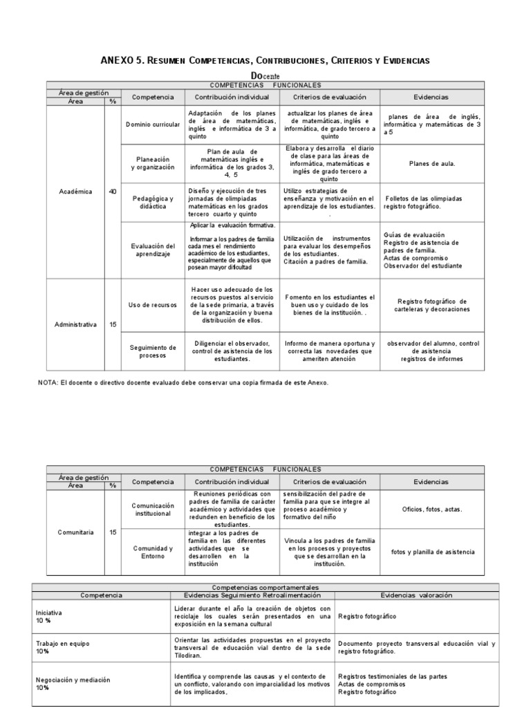 NOTA: El docente o directivo docente evaluado debe conservar una copia firmada de este Anexo.