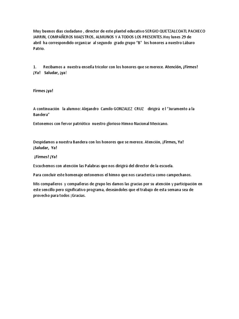 JARRIN, COMPAÑEROS MAESTROS, ALMUNOS Y A TODOS LOS PRESENTES.Hoy lunes 29 de