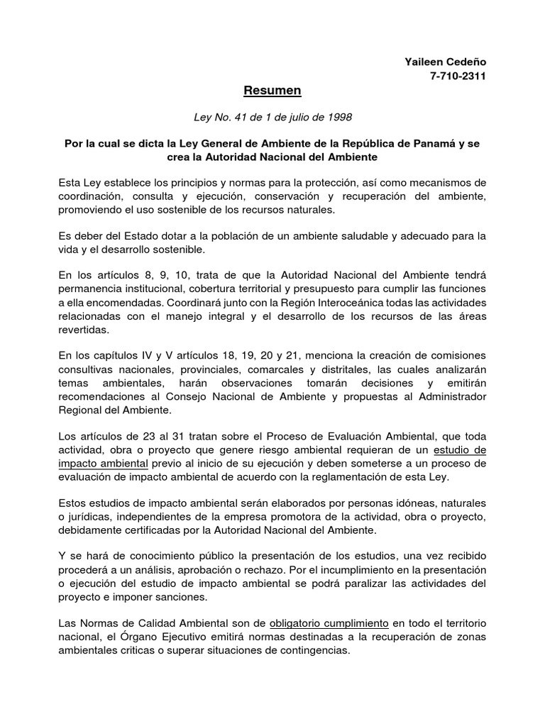 Por la cual se dicta la Ley General de Ambiente de la República de Panamá y se
