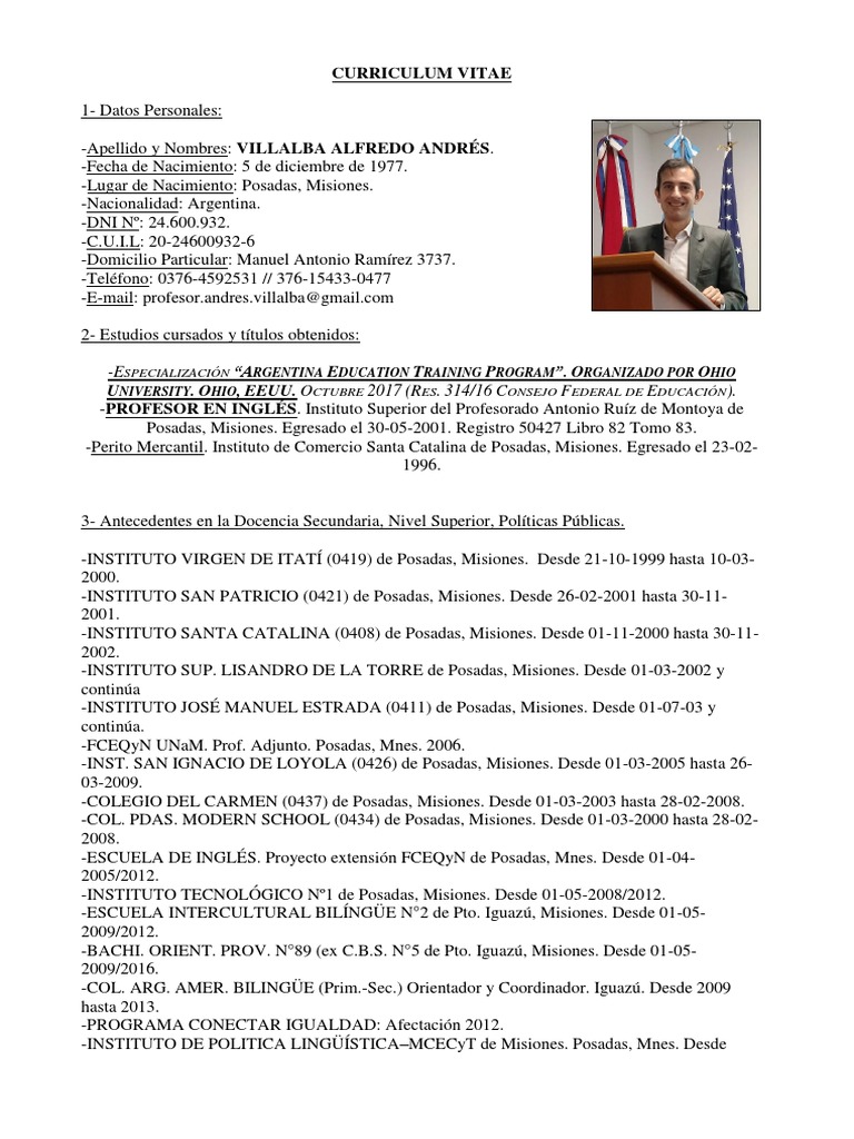 -Apellido y Nombres: VILLALBA ALFREDO ANDRÉS.