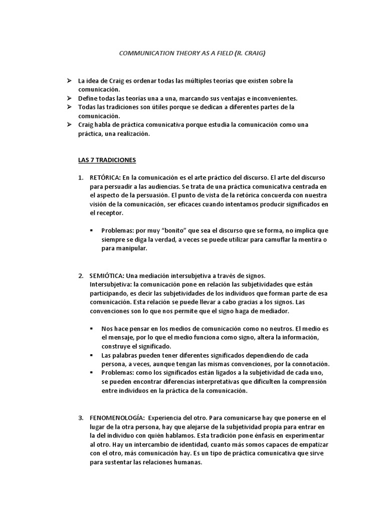 Craig habla de práctica comunicativa porque estudia la comunicación como una