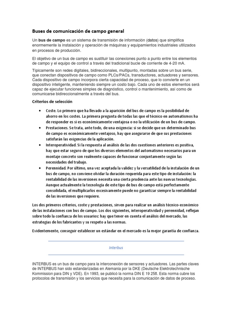 INTERBUS es un bus de campo para la interconexión de sensores y actuadores. Las partes claves