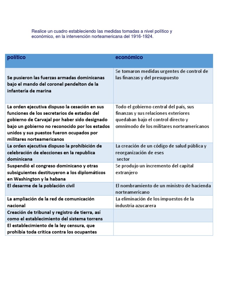 Realice un cuadro estableciendo las medidas tomadas a nivel político y
