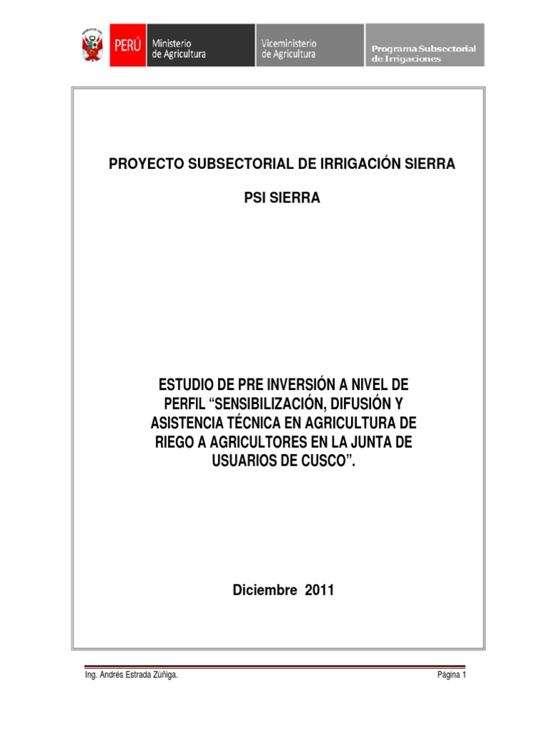 Estudio de Pre inversión a nivel de Perfil “Sensibilización, Difusión y Asistencia Técnica en Agricultura de Riego a