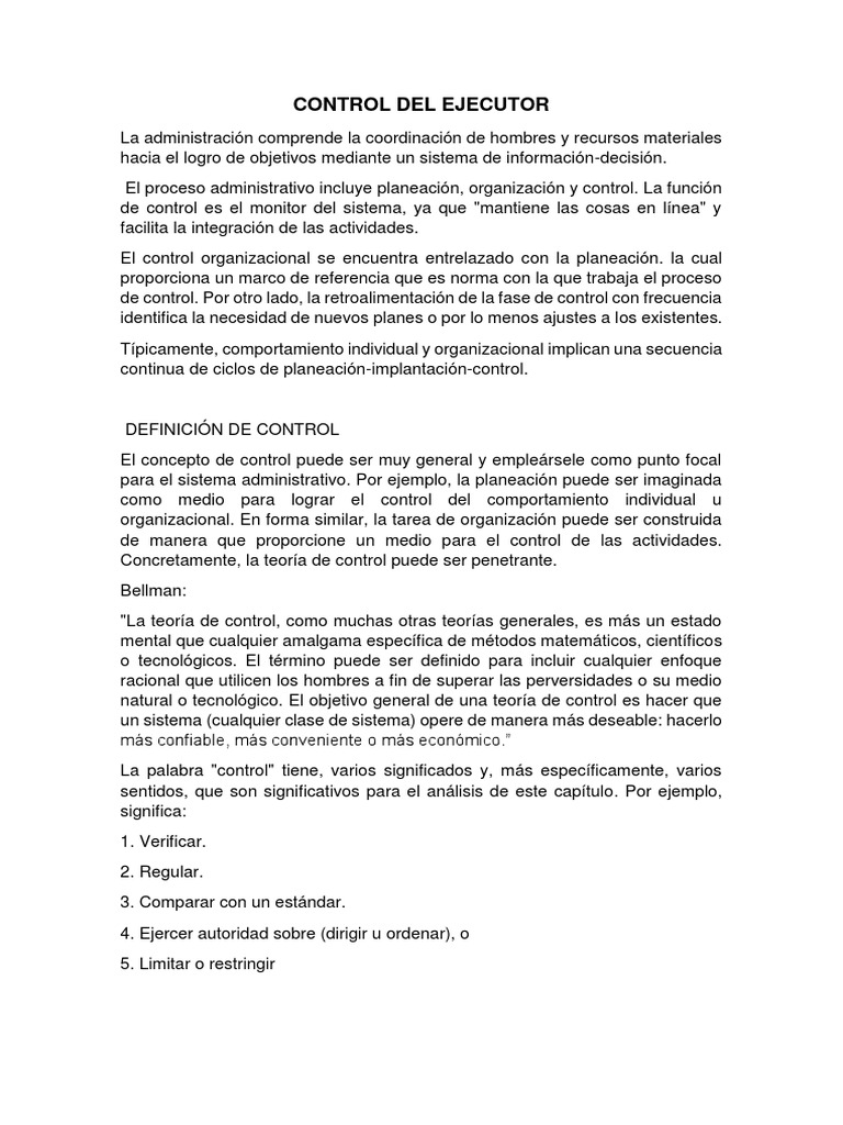 El concepto de control puede ser muy general y empleársele como punto focal