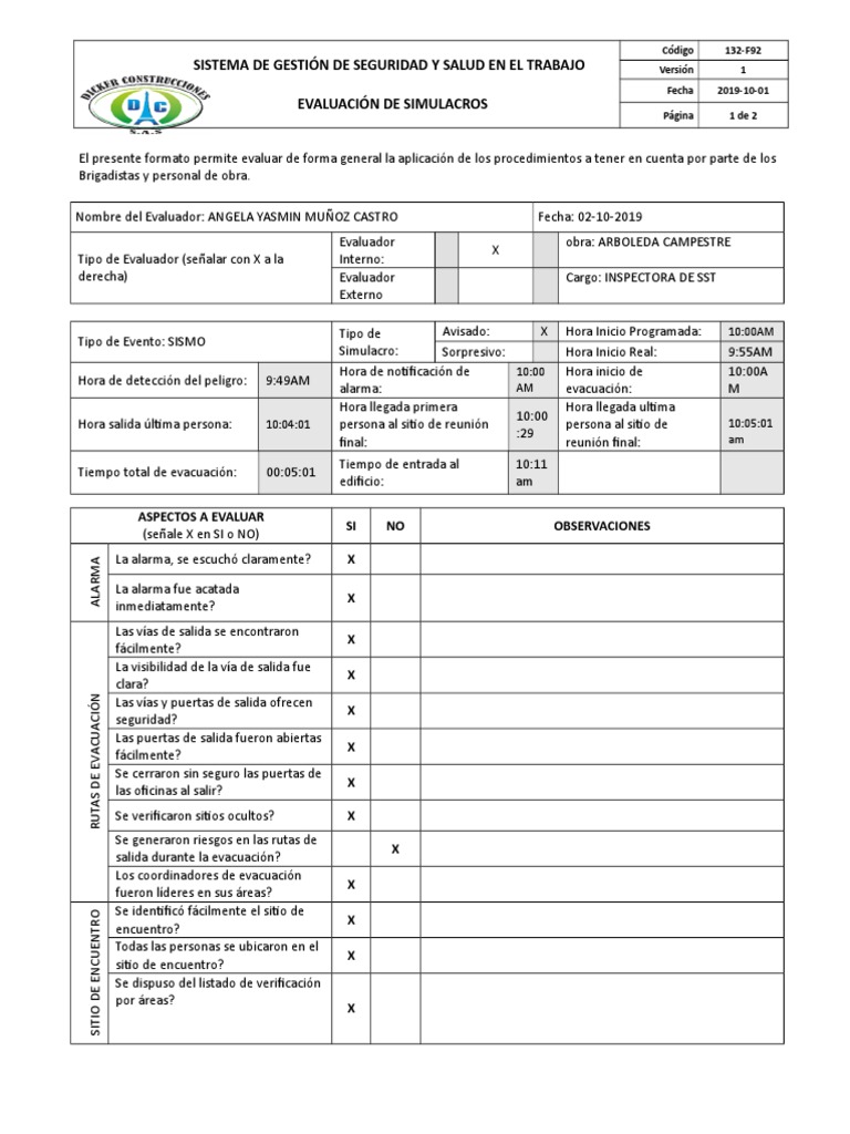 derecha) Evaluador Cargo: INSPECTORA DE SST