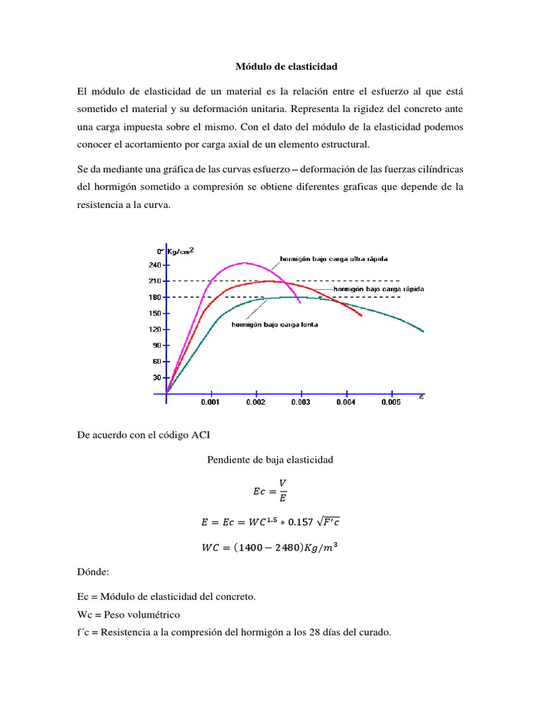 sometido el material y su deformación unitaria. Representa la rigidez del concreto ante