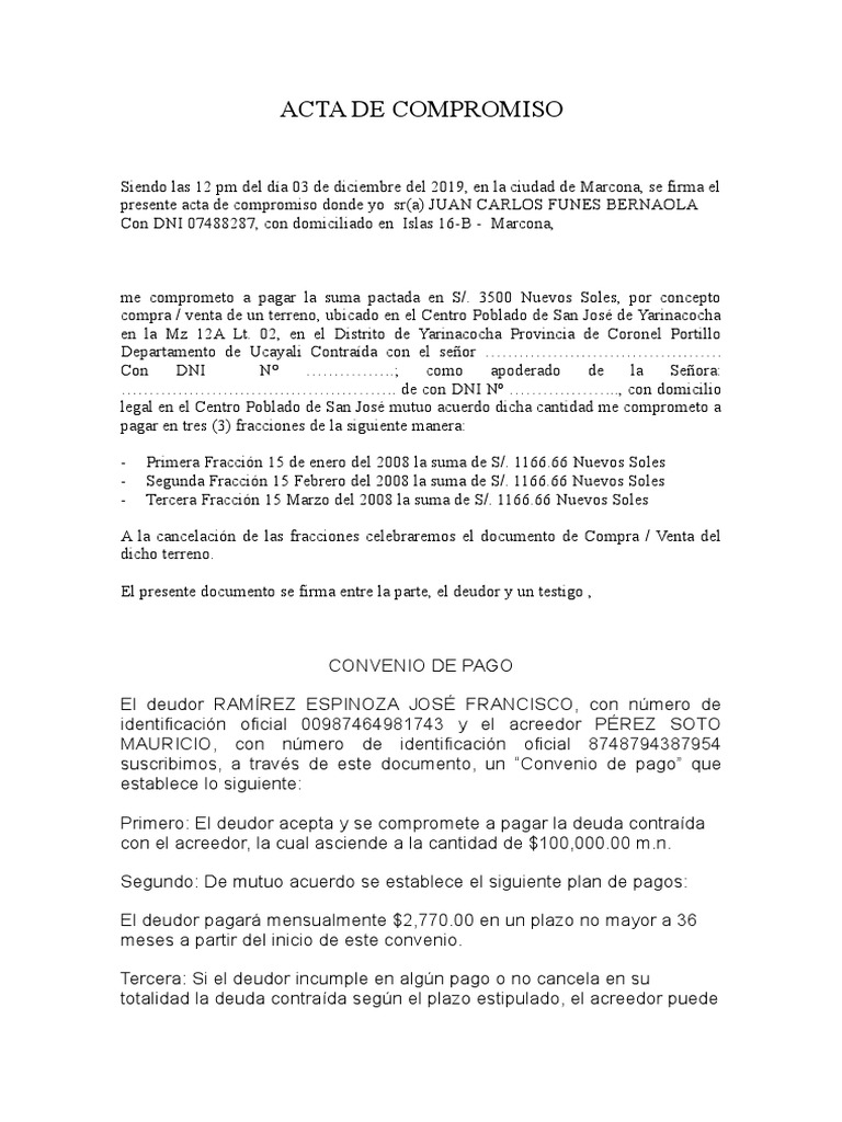 presente acta de compromiso donde yo sr(a) JUAN CARLOS FUNES BERNAOLA
