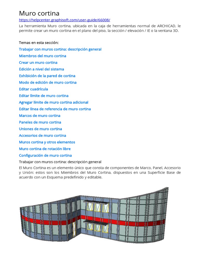 muro cortina a otros elementos y para agregar múltiples porciones de muro cortina