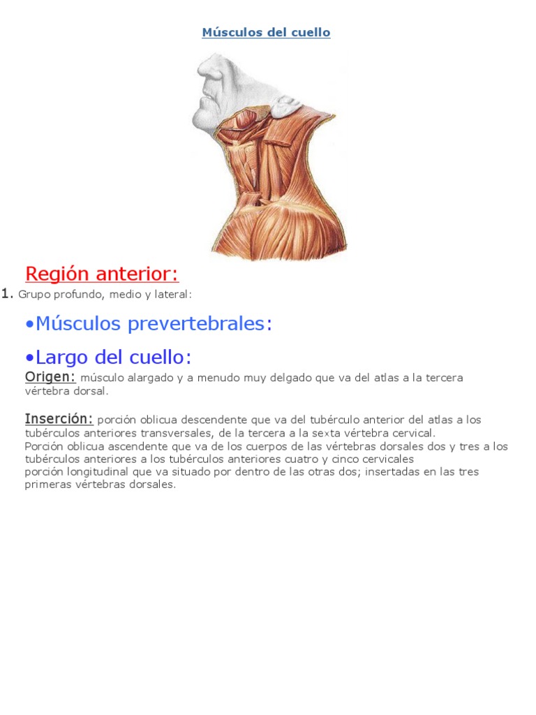 Está ubicado sobre las músculos anteriores, él extiende la columna cervical y la inclina