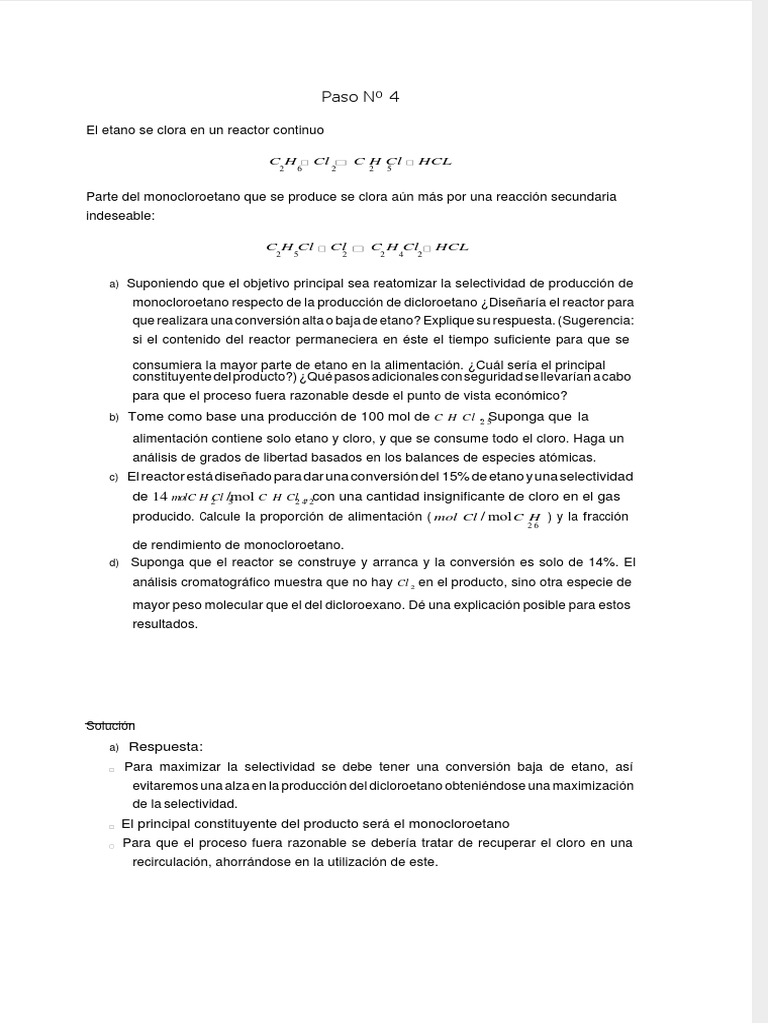 monocloroetano respecto de la producción de dicloroetano ¿Diseñaría el reactor para