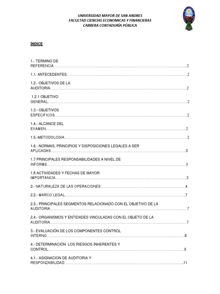 1. TÉRMINOS DE REFERENCIA DE LA AUDITORIA - DIAGNOSTICO GENERAL