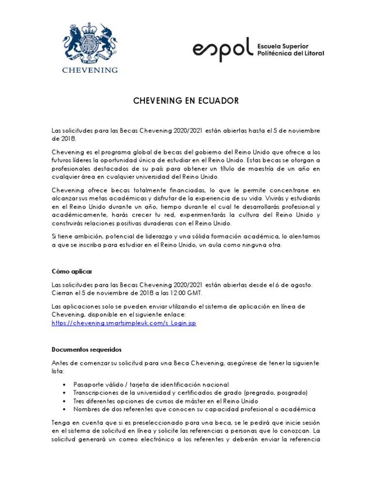 sobre cómo solicitar una beca Chevening, visite la página de solicitud de la beca para la