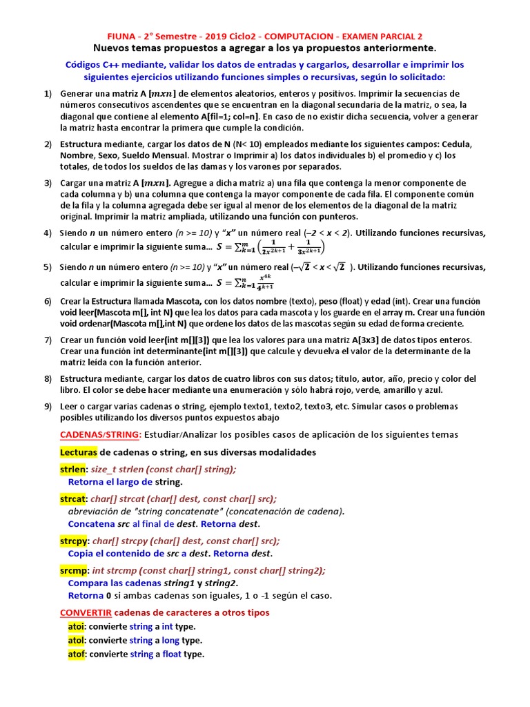 FIUNA - 2° Semestre - 2019 Ciclo2 - COMPUTACION - EXAMEN PARCIAL 2