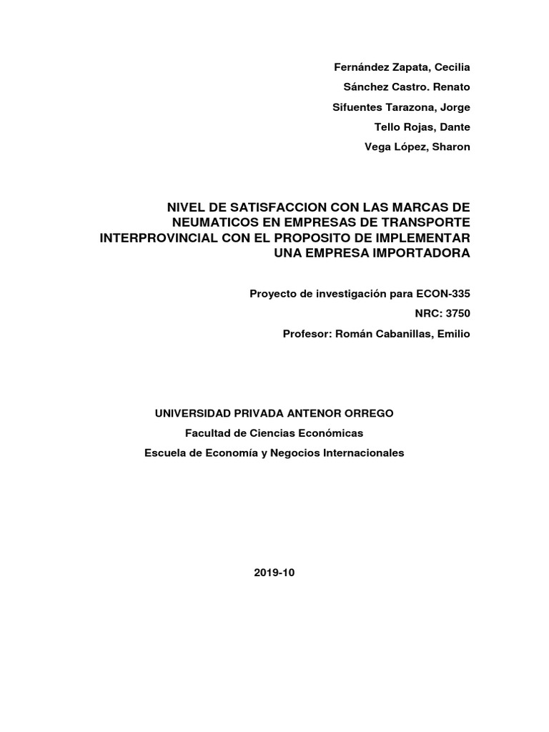 Antecedentes sobre la Demanda de neumáticos importados en Perú.