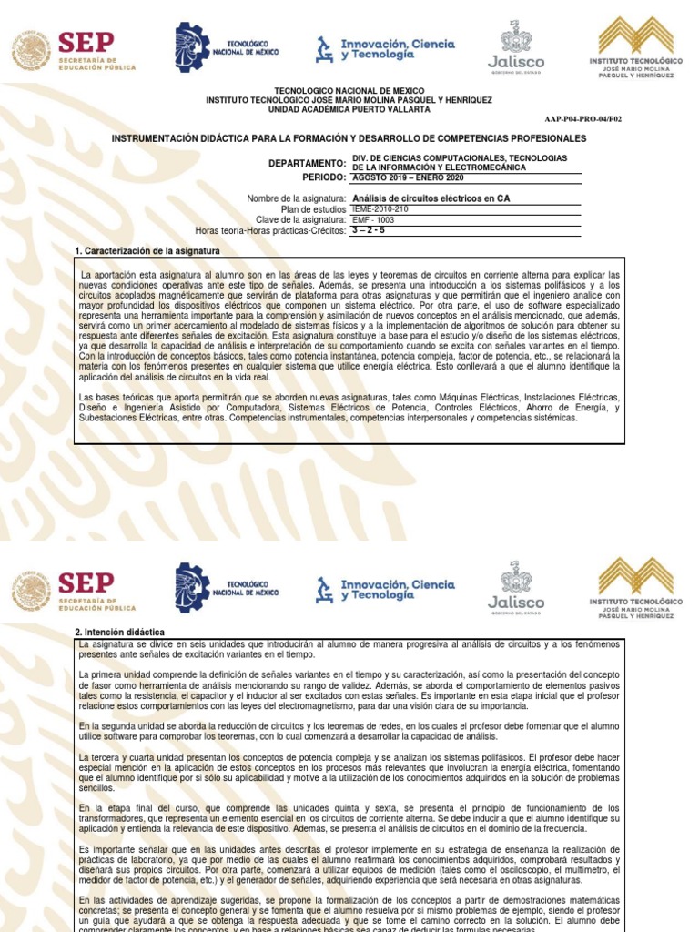 La tercera y cuarta unidad presentan los conceptos de potencia compleja y se analizan los sistemas polifásicos. El profesor debe hacer