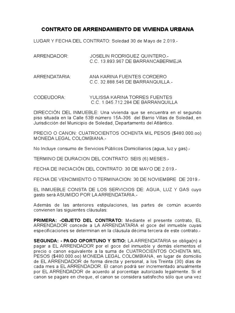CONTRATO DE ARRENDAMIENTO DE VIVIENDA URBANA