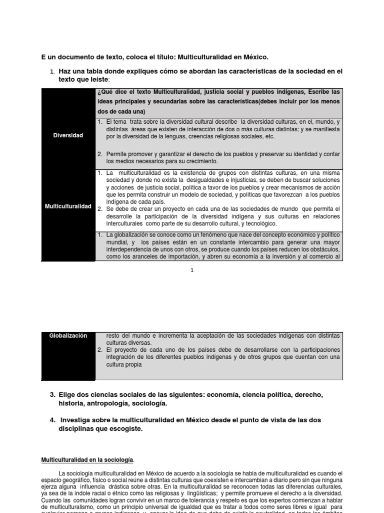 4. Investiga sobre la multiculturalidad en México desde el punto de vista de las dos