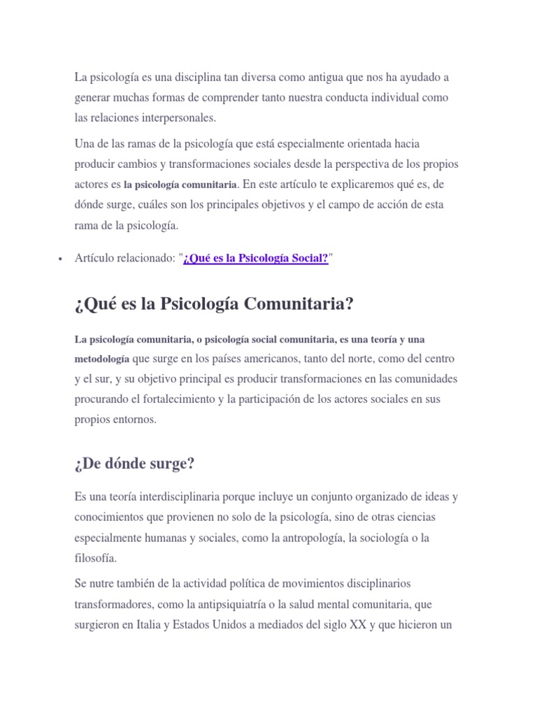 Por esto la psicología comunitaria se relaciona estrechamente con los conceptos