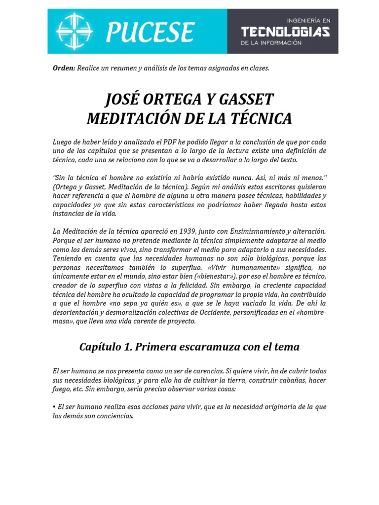 que se oponen a la realización de nuestro programa. Para ello cuenta con la técnica. Ortega cita