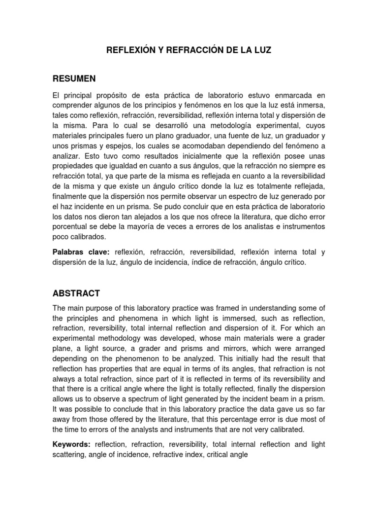 En esta experiencia de laboratorio se abordaran temas como reflexión, refracción,